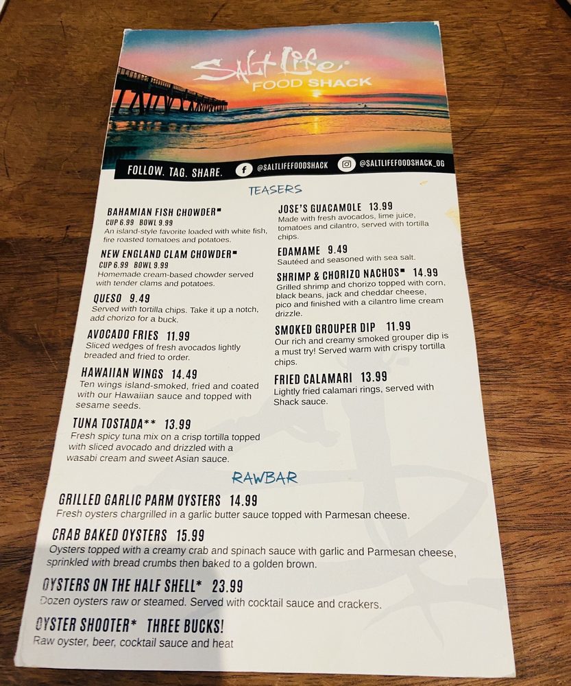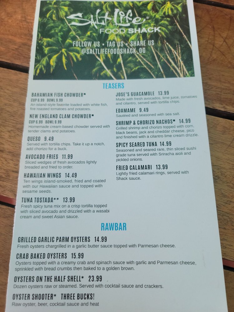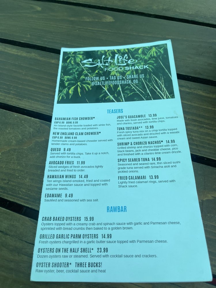 Introducing the menu at Salt Life Food Shack in Jacksonville Beach, FL, a New American Seafood and Tacos hotspot, offering a plethora of options for all tastes. From Bahamian Fish Chowder to Avocado Fries, the menu showcases a variety of mouthwatering dishes. Indulge in their Rawbar delights like Crab Baked Oysters or grilled Garlic Parm Oysters. Savor their Sushi selection with options like the Crunch Roll or Spicy Tuna Roll. Customers rave about the exceptional service and fresh, excellently prepared meals. Whether you're in the mood for seafood, sushi, or a casual bite, Salt Life Food Shack is a must-visit destination for a delightful dining experience.
